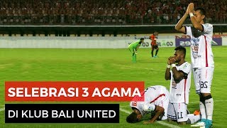 Selebrasi Gol 3 Pemain Bali UTD Beda Agama. Maraknya isu SARA dan intoleransi di Indonesia tidak berlaku bagi klub sepak bola nasional, Bali United.